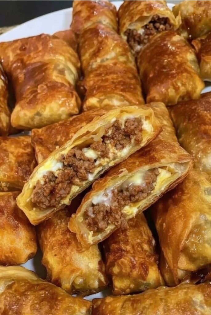crispy beef and cheese stuffed pastry rolls (similar to savory puff pastry rolls or fried spring-roll style pastries). Here’s a