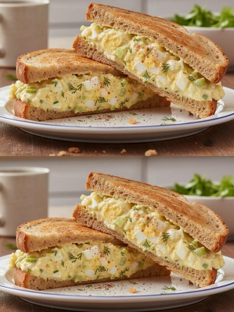 egg salad sandwich 🥪 made with toasted bread, chopped boiled eggs, and a creamy dressing. Here’s the full recipe so