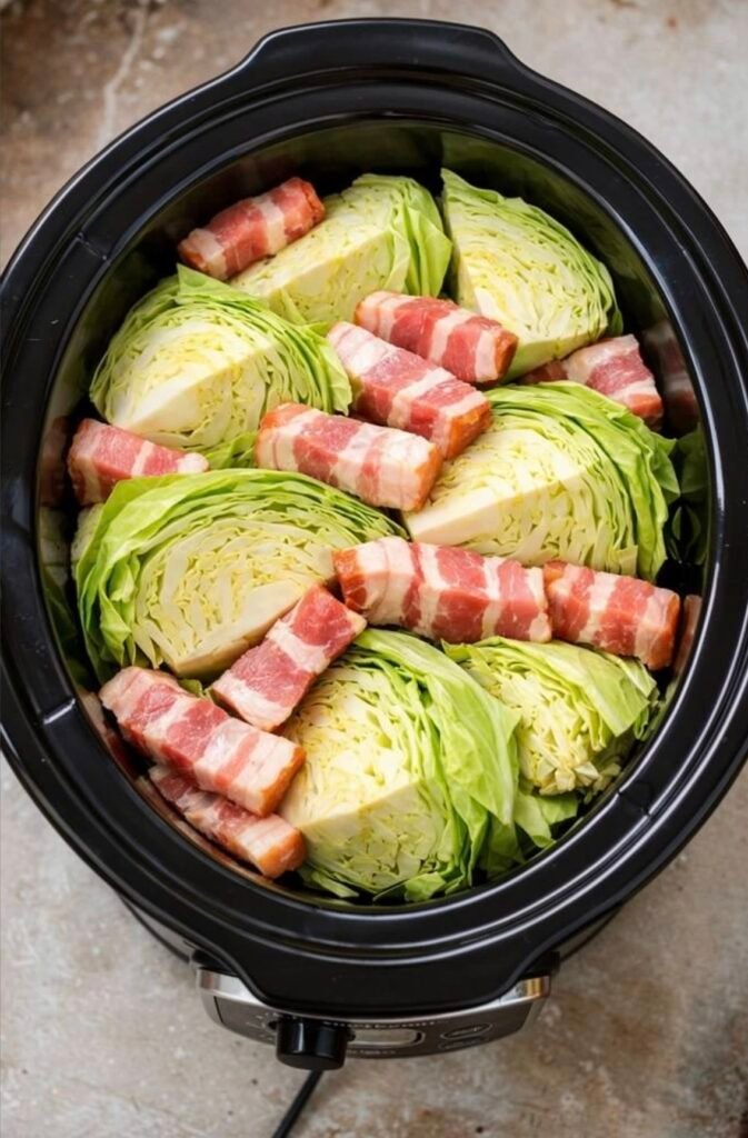 Slow Cooker Cabbage with Bacon recipe (a simple, flavorful dish where cabbage slowly cooks with bacon until tender and savory).
