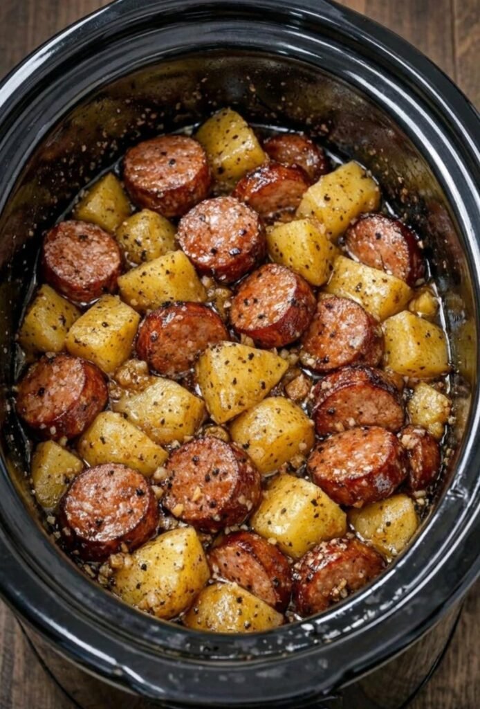 slow cooker sausage and potatoes dish (often called Garlic Butter Sausage & Potatoes). Hereās a full recipe you can follow.