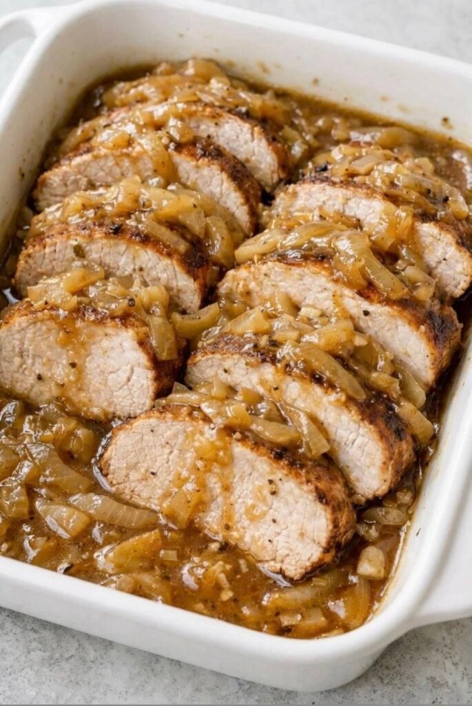 smothered pork tenderloin with onion gravy ๐Hereโs a full, detailed recipe you can follow. ๐ Smothered Pork Tenderloin with Onion