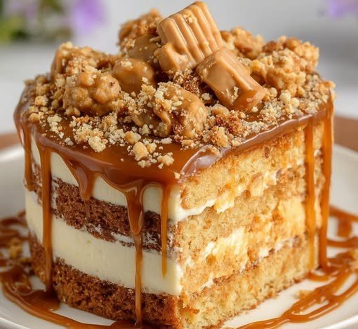 Caramel Crunch Cake (Layered, Crunchy & Decadent) 4 A rich, indulgent cake featuring moist layers, creamy caramel frosting, and a