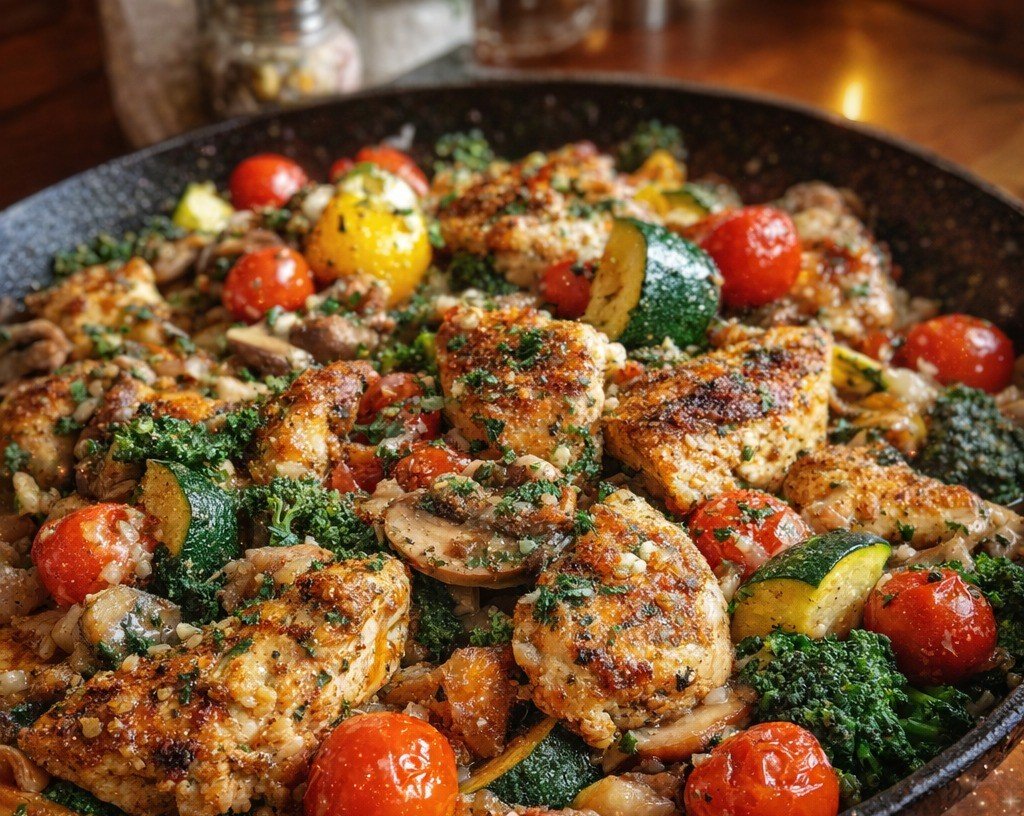 Loaded Chicken and Veggie Skillet (One-Pan Meal) 4 A hearty, colorful, one-pan meal packed with tender chicken, fresh vegetables, and
