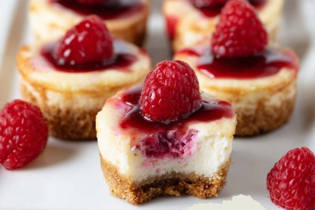 Raspberry Cheesecake Bites (Mini, Creamy & Fruity) 4 Perfectly creamy cheesecake in bite-sized portions with a buttery crust and fresh