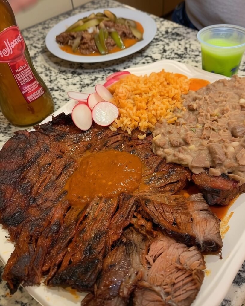 classic Mexican barbacoa plate with rice, refried beans, and salsa. Here’s a full, authentic-style recipe so you can recreate it