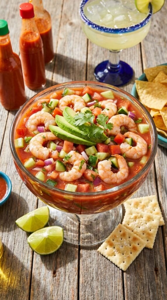 Mexican Shrimp Cocktail (Coctel de Camarones) 4 A refreshing, zesty seafood classic loaded with juicy shrimp, tomato-clam sauce, crisp veggies,