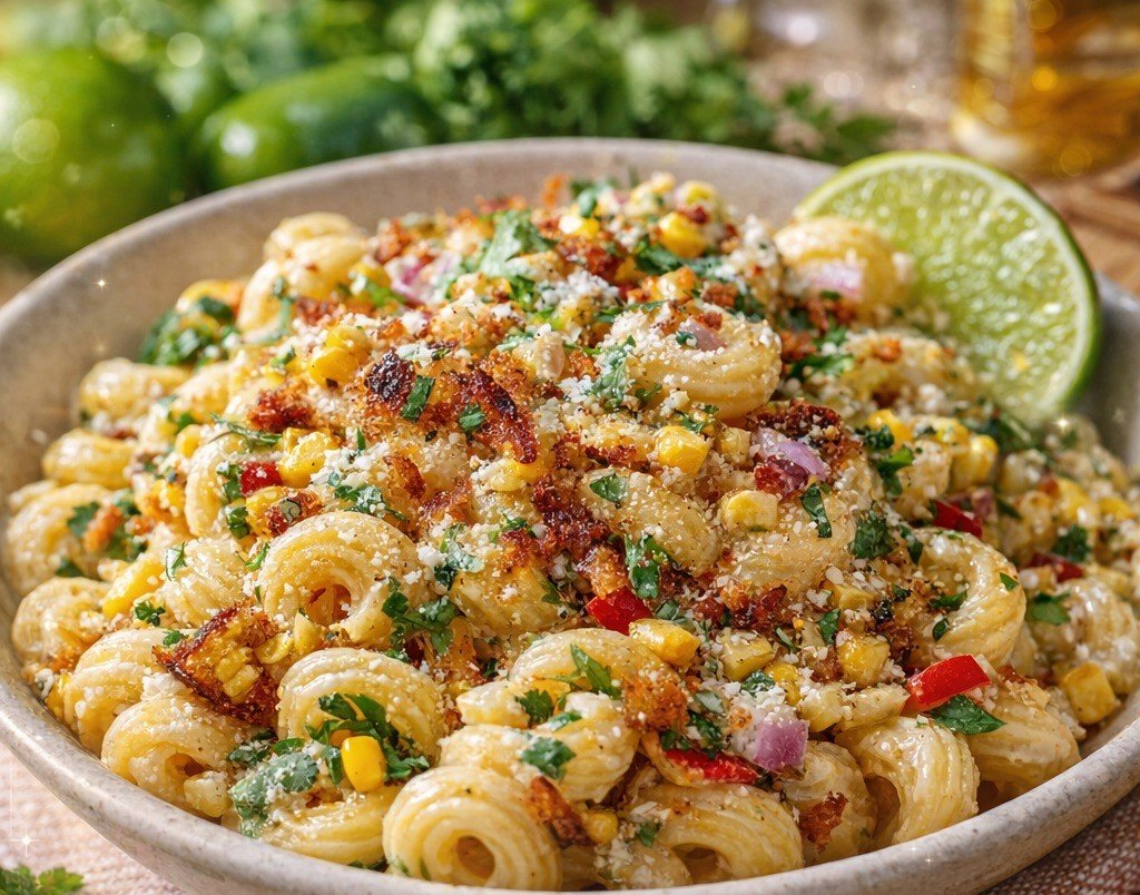 Mexican Street Corn Pasta Salad (Elote Pasta Salad) A creamy, smoky, tangy pasta salad inspired by classic Mexican street corn
