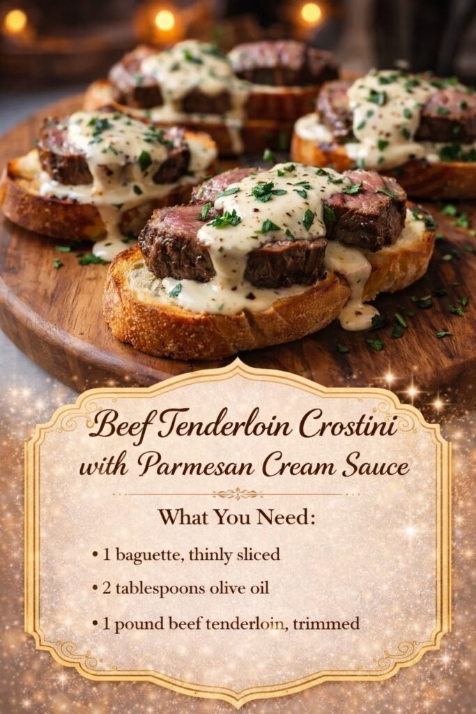 Hereโs a complete, step-by-step recipe for elegant and flavorful Beef Tenderloin Crostini with Parmesan Cream Sauce โ perfect for dinner