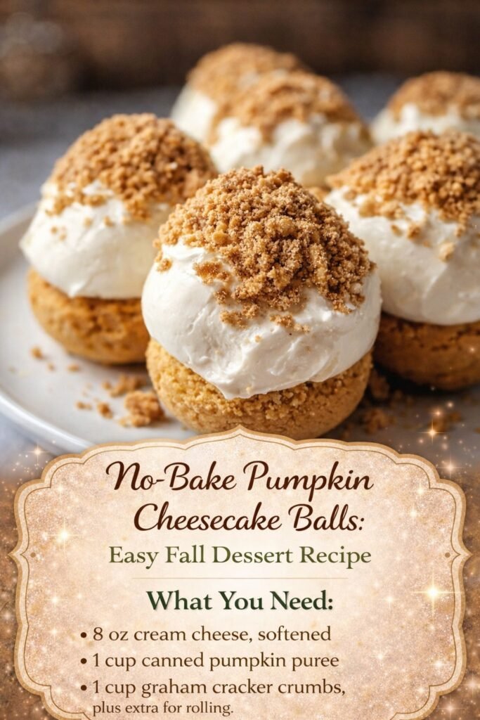 Hereโs a complete, easy, no-bake recipe for soft, creamy, perfectly spiced Pumpkin Cheesecake Balls โ ideal for fall gatherings, holidays,