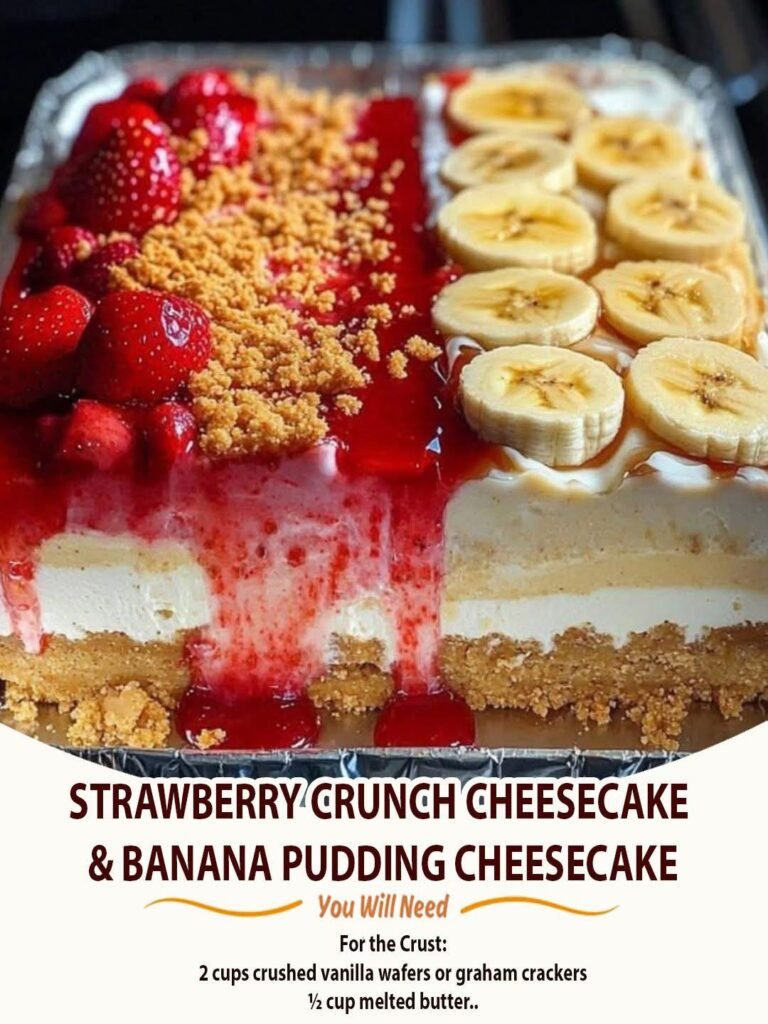 Here are two full, bakery-style cheesecake recipes โ rich, creamy, and layered with flavor ๐๐ ๐ Strawberry Crunch Cheesecake Inspired