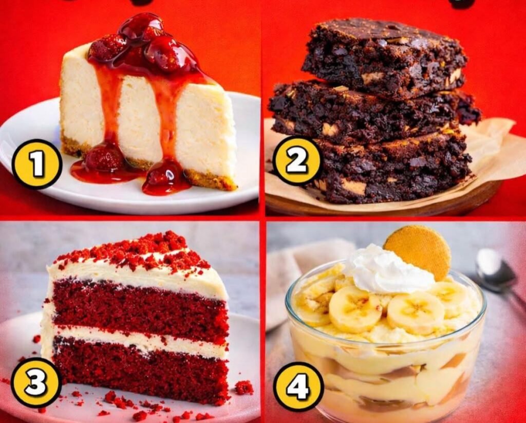 Here are the full recipes for the 4 desserts 🍰 1️⃣ Strawberry Cheesecake Ingredients Crust 1 ½ cups graham cracker