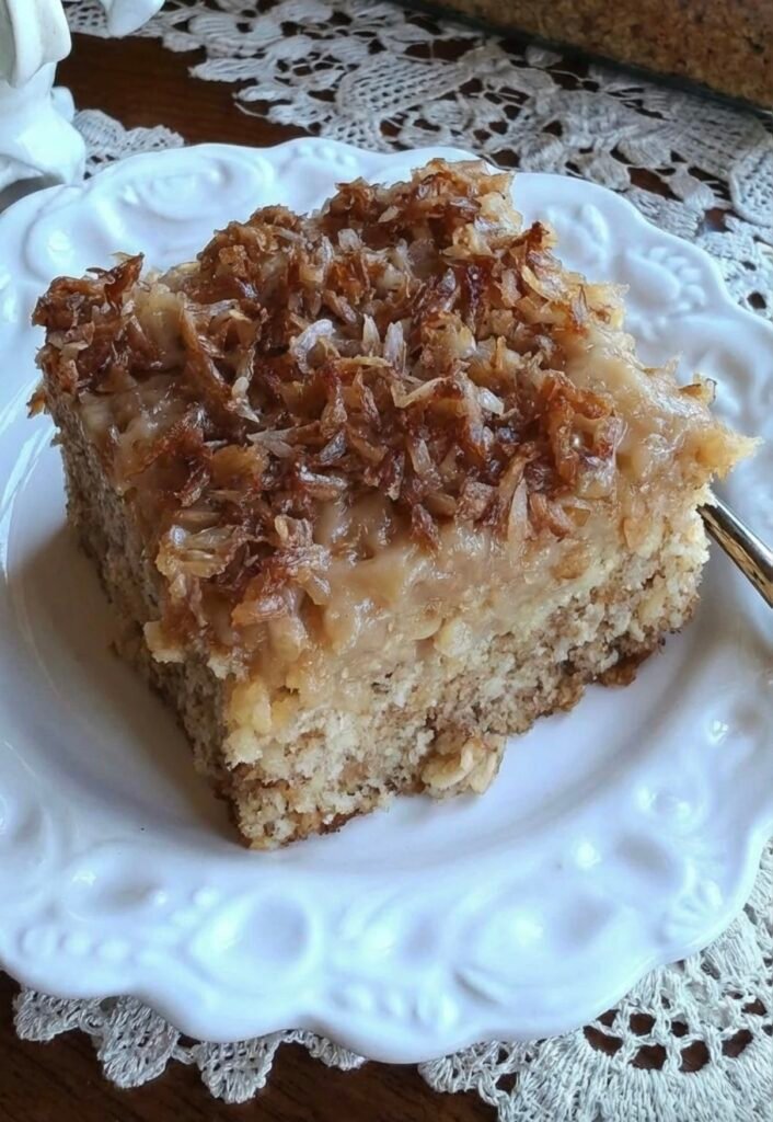 Coconut Cream Poke Cake (sometimes called coconut custard cake). It has a moist vanilla cake base, a creamy pudding layer,