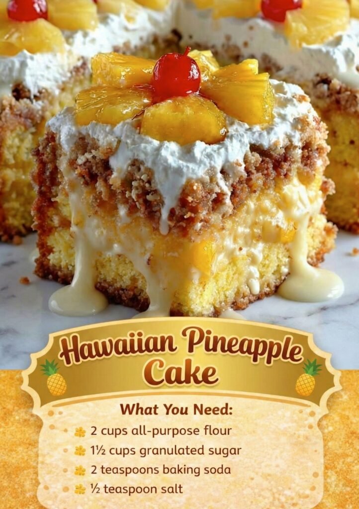 Here’s a classic, moist, and fluffy Hawaiian Pineapple Cake recipe — soft vanilla cake topped with sweet pineapple glaze and