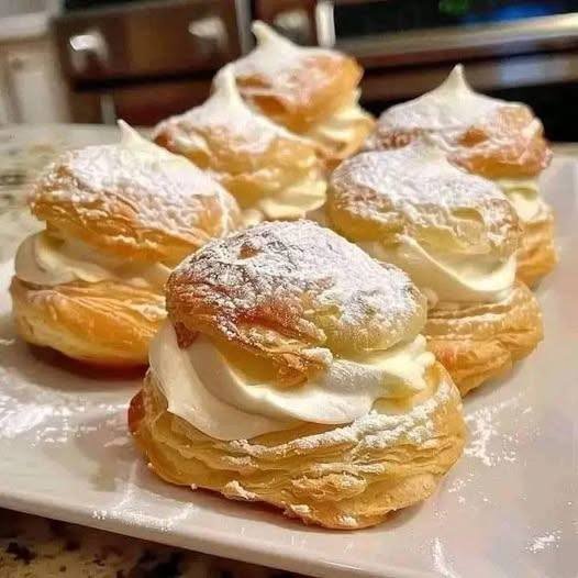 cream puffs (choux pastry) filled with whipped cream 😍Here’s the full homemade recipe from scratch: 🥐 Cream Puffs (Choux Pastry