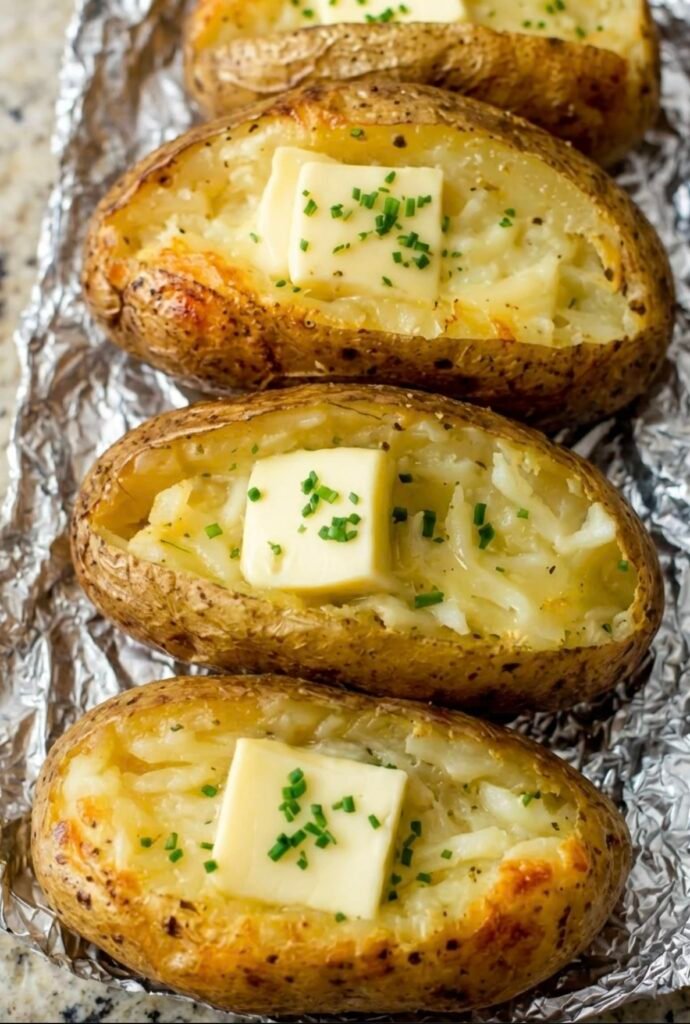 classic oven-baked potatoes with butter and chives 🥔🧈 — crispy skin outside, fluffy inside. Here’s a simple recipe to recreate