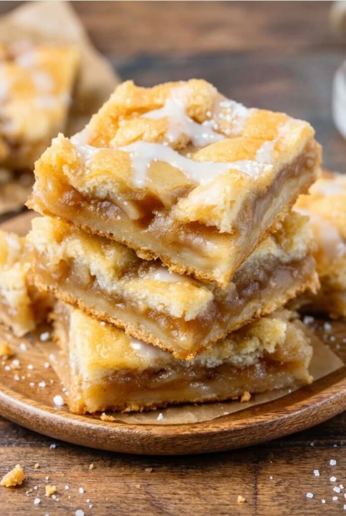 caramel apple pie bars 🍏✨ — buttery shortbread crust, gooey cinnamon apple filling, and a sweet glaze on top. Here’s