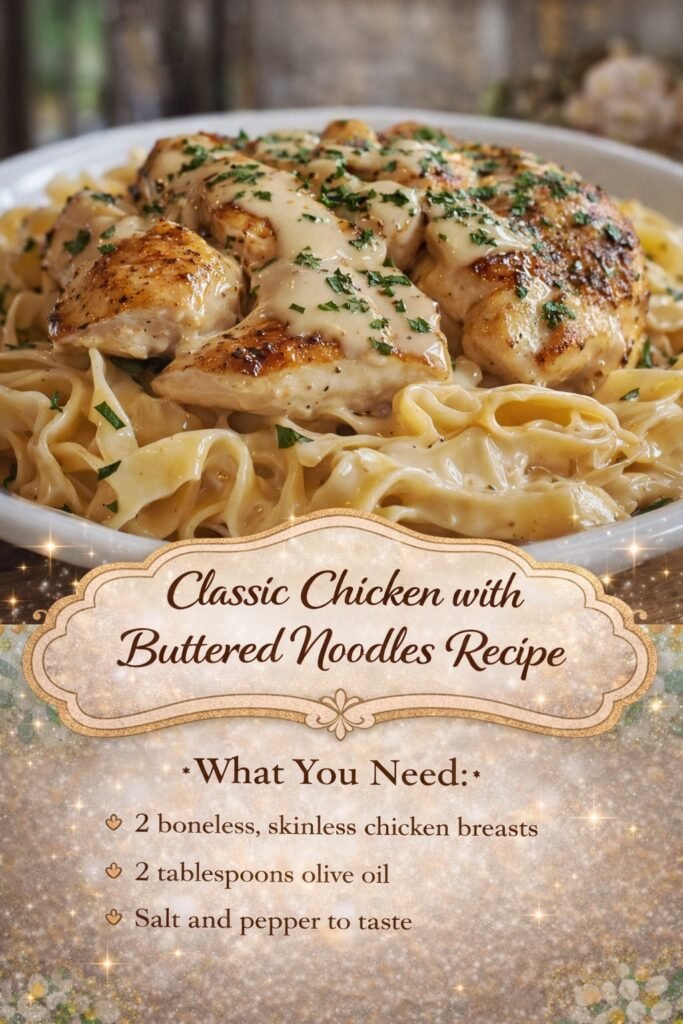 Here’s a comforting, family-style Classic Chicken with Buttered Noodles recipe—simple, hearty, and perfect for weeknights. 🍗 Classic Chicken with Buttered