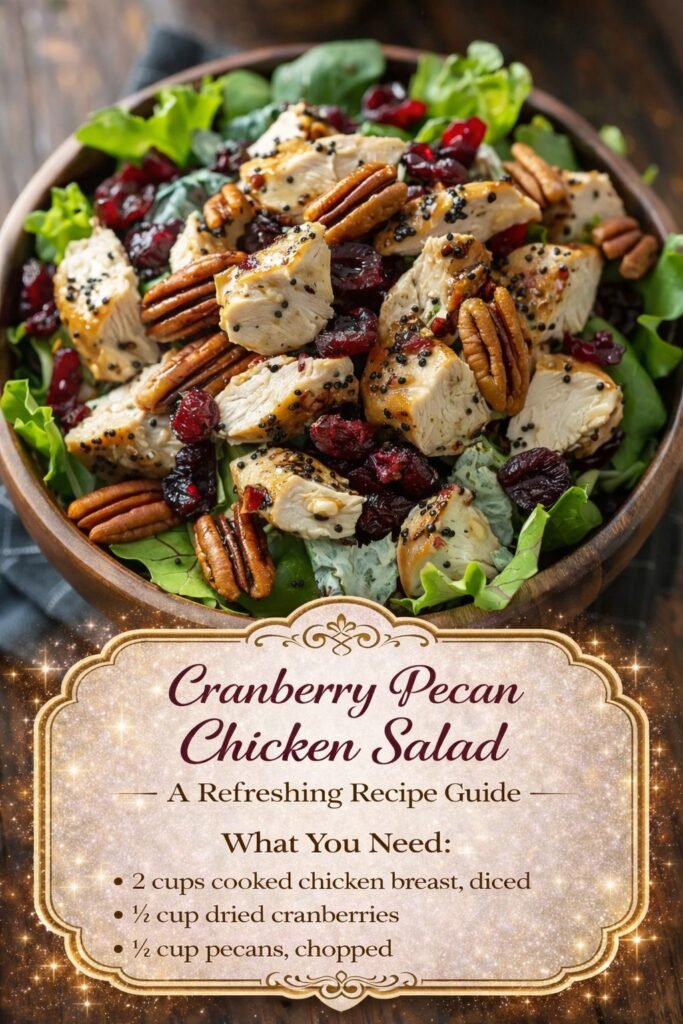 Here’s a delicious, deli-style Cranberry Pecan Chicken Salad — creamy, slightly sweet, and perfect for sandwiches, wraps, or lettuce cups.