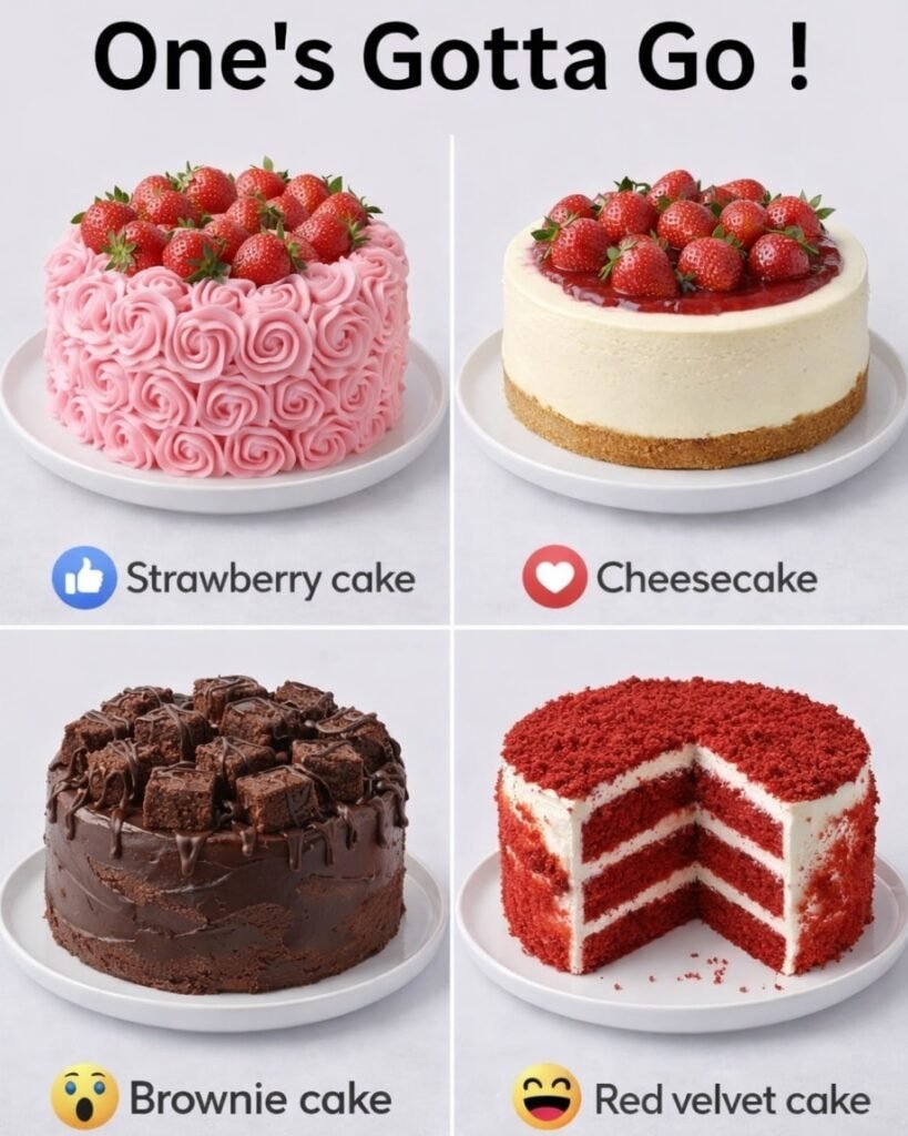 Here are full recipes for all four cakes : Strawberry Cake, Cheesecake, Brownie Cake, and Red Velvet Cake 🍰👇 🍓