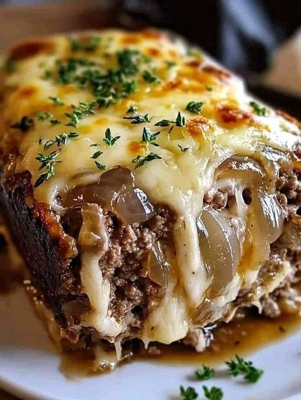 French Onion Meatloaf with Melted Swiss Cheese This French Onion Meatloaf combines the rich flavor of caramelized onions and beef