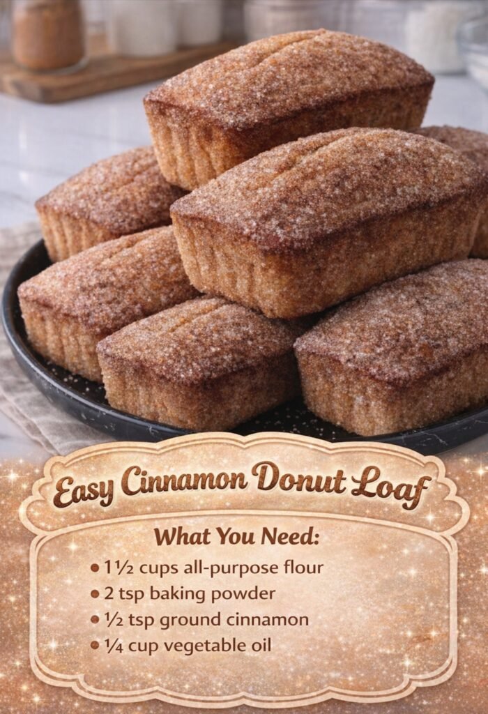 🍩 Easy Cinnamon Donut Loaf 4 Soft, buttery, and coated in cinnamon sugar — this tastes just like an old-fashioned