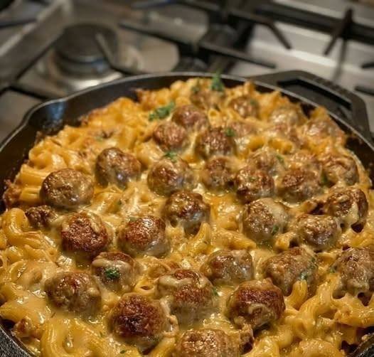 Hereβs a rich, cozy Cheesy Swedish Meatball & Noodle Casserole β creamy, savory, and perfect for family dinners. π§ Cheesy