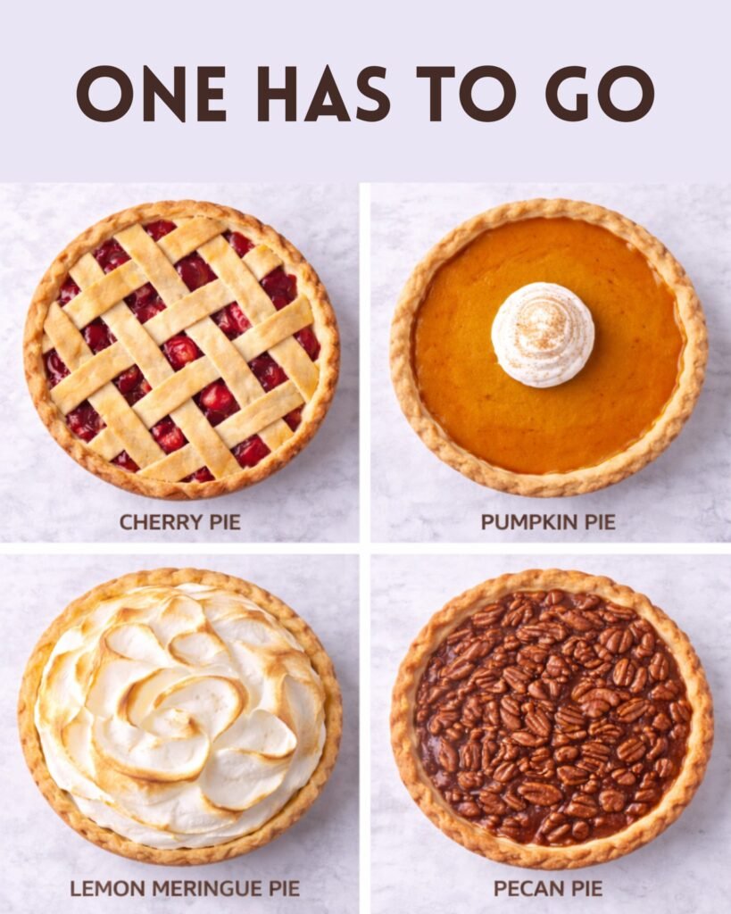 Cherry, Pumpkin, Lemon Meringue, and Pecan. Each makes one 9-inch pie. π Cherry Pie Ingredients Crust (double crust): 2Β½ cups