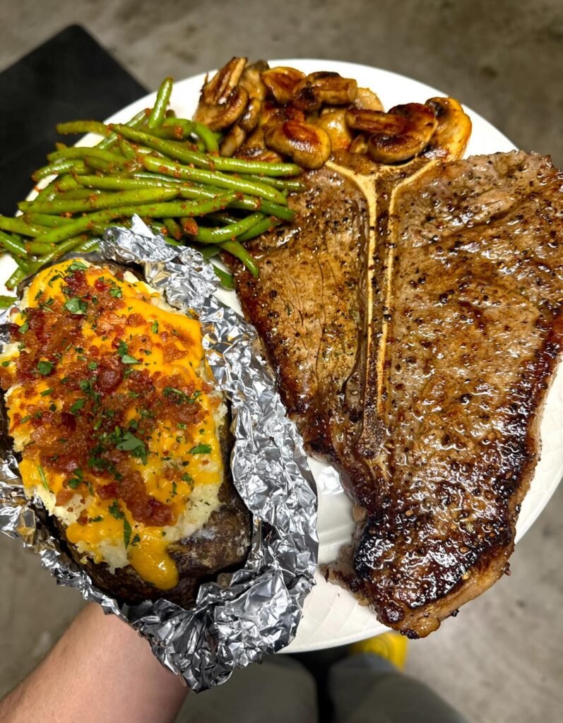 π₯© T-Bone Steak with Mushrooms, Green Beans & Baked Potato 4 A classic steakhouse-style dinner you can easily make at