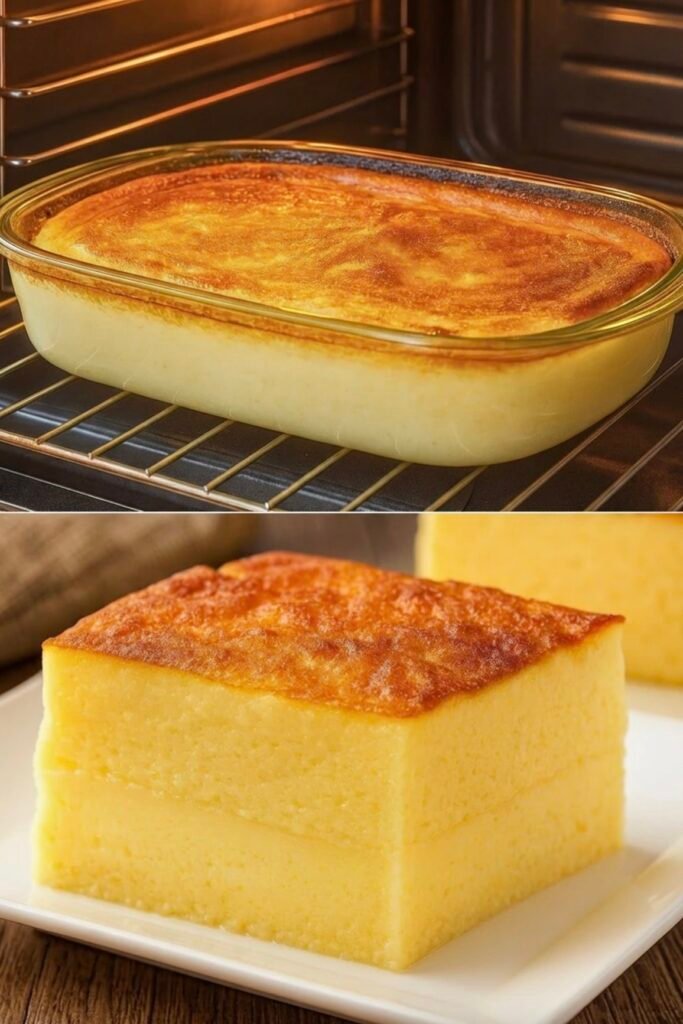 🍰 Magic Custard Cake (3-Layer Cake) 🛒 Ingredients 4 large eggs, room temperature (separated) ¾ cup (150g) granulated sugar ½