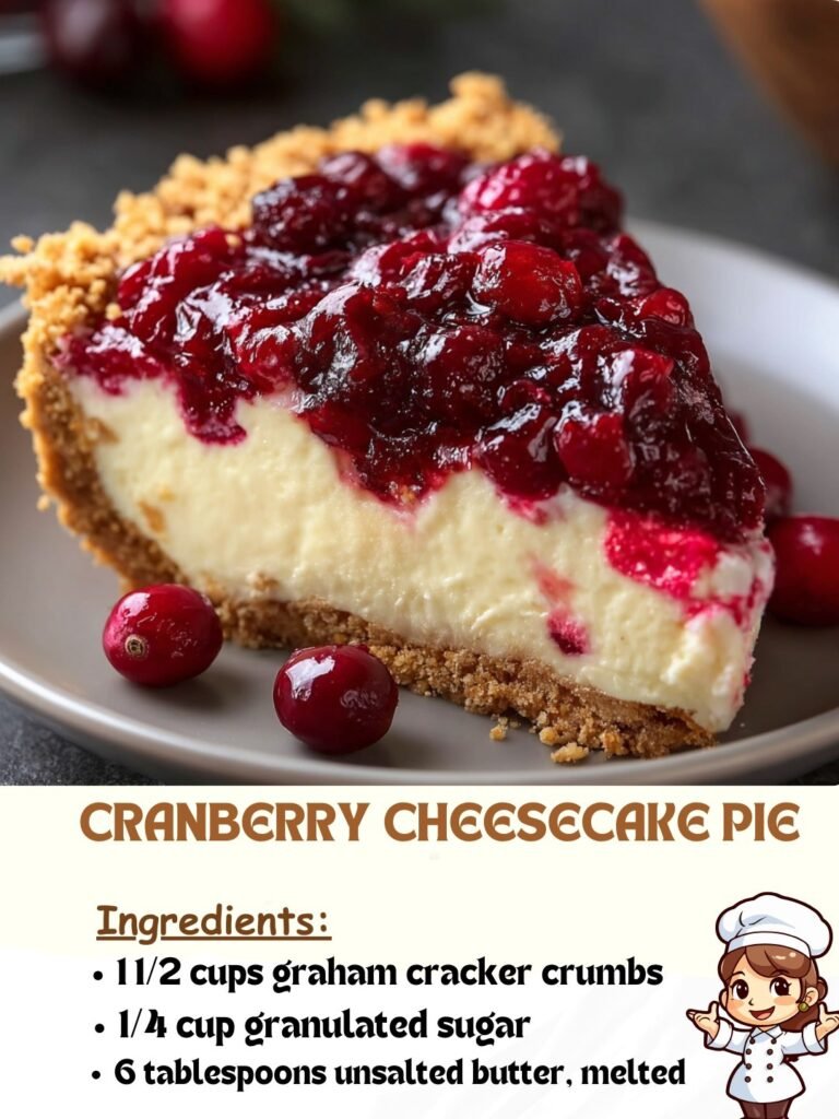 Here’s a beautiful Cranberry Cheesecake Pie that’s creamy, tangy, and perfect for holidays or winter gatherings. It combines a smooth