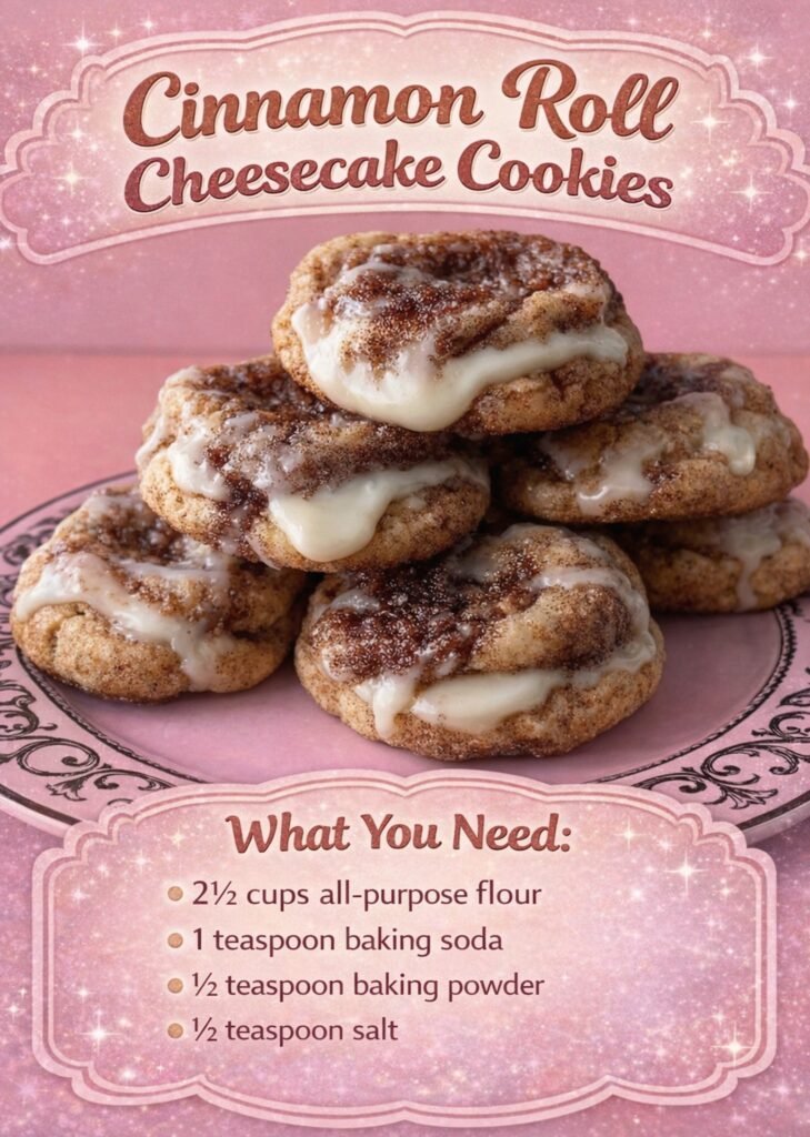 Cinnamon Roll Cheesecake Cookies Ingredients Cookie Dough ¾ cup unsalted butter, softened ¾ cup granulated sugar ¼ cup brown sugar