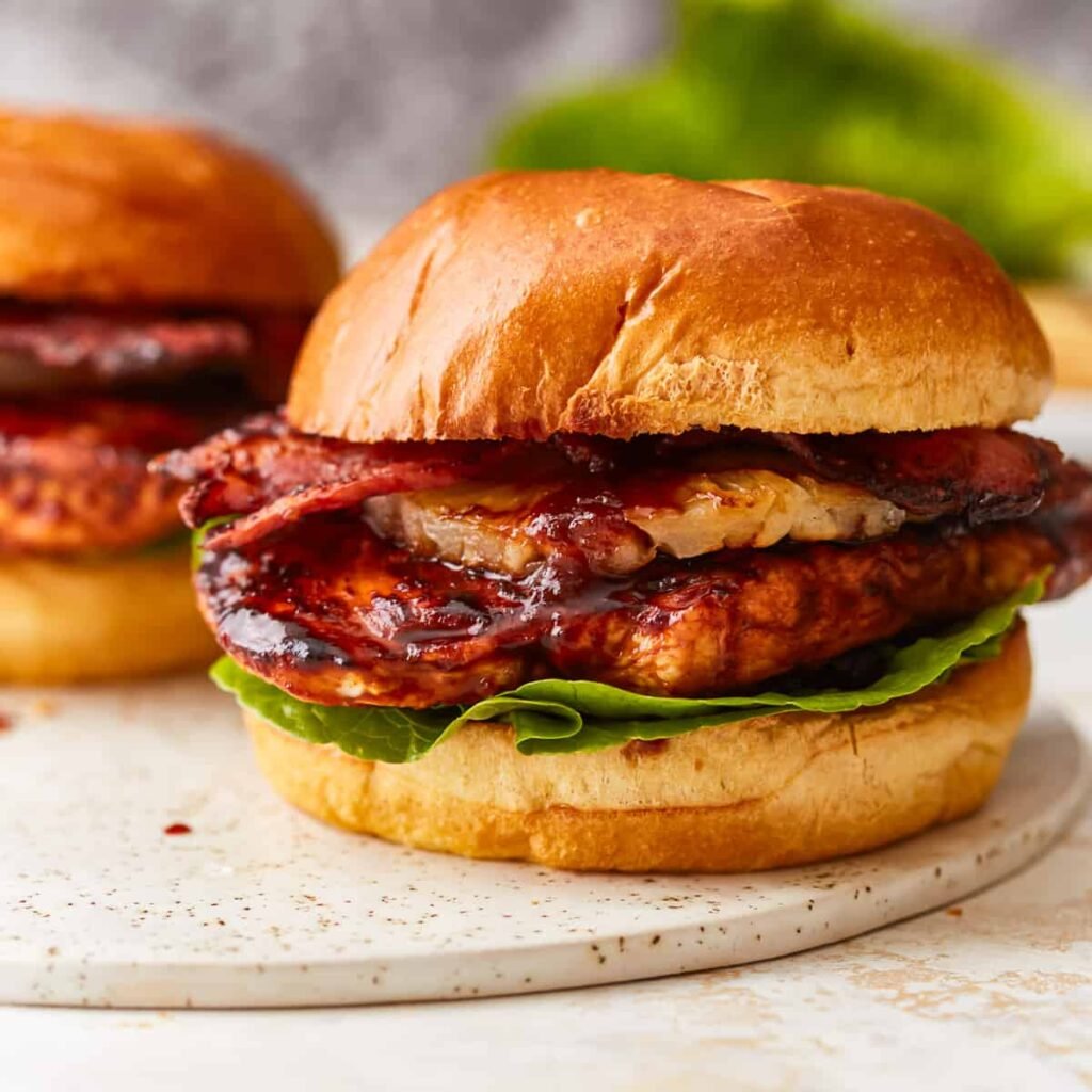 The Hawaiian Chicken Sandwich Ingredients Chicken 2 large boneless, skinless chicken breasts (or 4 thighs) ½ cup pineapple juice ¼